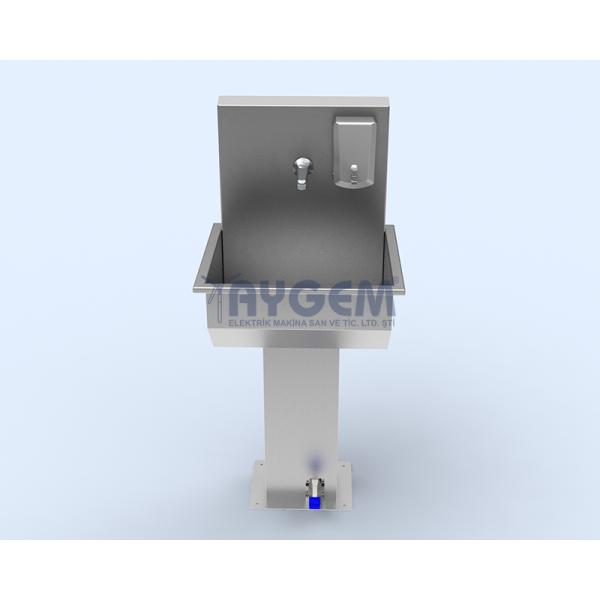 It is made of 304 quality Cr.Ni stainless material. Accessories mounted on it can be by your request. When the pedal at the bottom of the sink is pressed, water flows from the tap. When the pedal is released, the water flow from the tap is cut off.