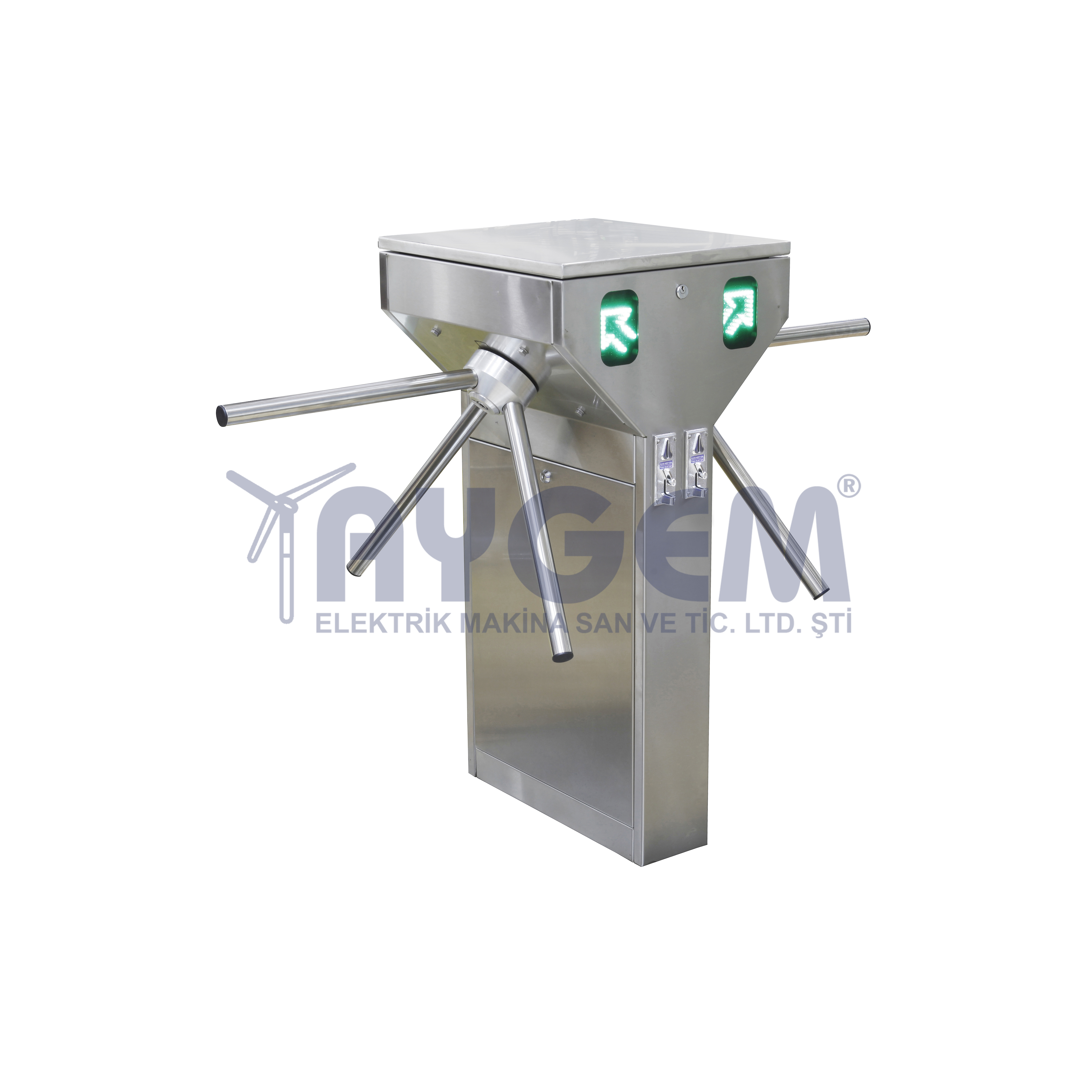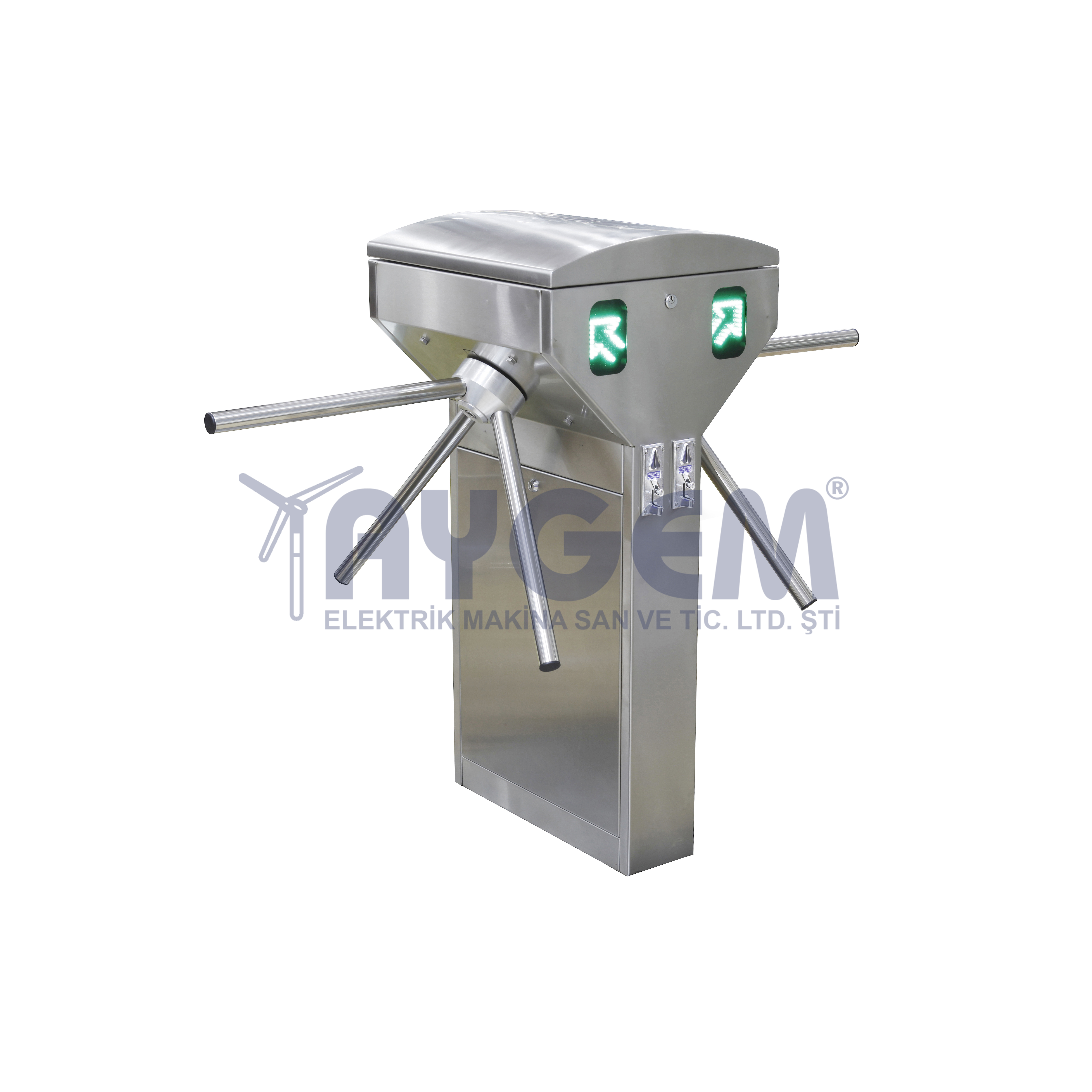 24 V DC selenoidler ile; kilitleme selenoitler çekili iken gerçekleşir.(Panik Durumunda sistem enerjisi kesilerek Turnike her iki yönde geçişe açık hale gelir.) |